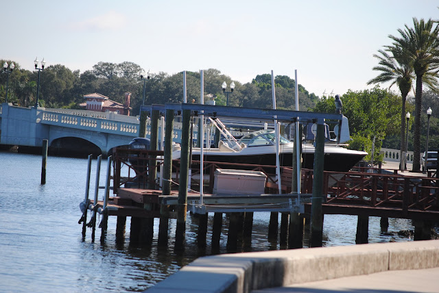 You can tell by my photos that I have a bit of an infatuation with Spanish style houses. And here in St. Petersburg, there is no shortage of amazing examples of Spanish Colonial Revival homes. I love the quirky roof lines, iron gates and ironwork on the windows, the old brick walkways and delicious stucco, some of which is troweled on like icing on a fancy cake. And of course the colours are most striking. Pistachio green, lemon yellow, purple and pink are all prominent. The barrel tiled roofs help to keep them insulated and cool and the foot thick walls make them a good choice in hurricane prone Florida. My walk yesterday took me past so many fine examples. Had I snapped them all, I would have been gone a very long time. A pair of frisky dolphins passed me making their way north through Coffee Pot Bayou. It's easy to keep occupied here with the beautiful waterfront, show of homes, birds, dolphins and sunny skies.