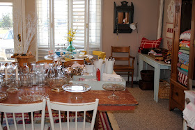ReplyDeleteI was at a quaint little place yesterday that yours reminds me of, we sat outside on a patio that had an old china cabinet with no doors loaded with everything you need to help yourself - urns for coffee, tea, milk, water, lemonade, and all the paper goods and stuff a diner needs. No waiting, help yourself-love that.